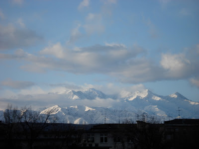 I am delighted to announce that Summer has come to Kyrgzstan..."No, no Katie!" you say, "you're mistaken , surely you mean spring!" Well for the Kyrgyz, maybe this +17 weather and constant sunshine is known as spring. But to a homegrown British girl who spent most of her adult life in Ukraine, where the snow doesn't melt until late March, who also walked to school in pouring rain almost everyday in her childhood, to whom summer meant a rainstorm almost everyday with erratic bursts of sunshine and phenominal rainbows...THIS IS SUMMER. Infact, today I was hot. My feet were hot when we were walking outside. Oh the joys of living in Kyrgyzstan.